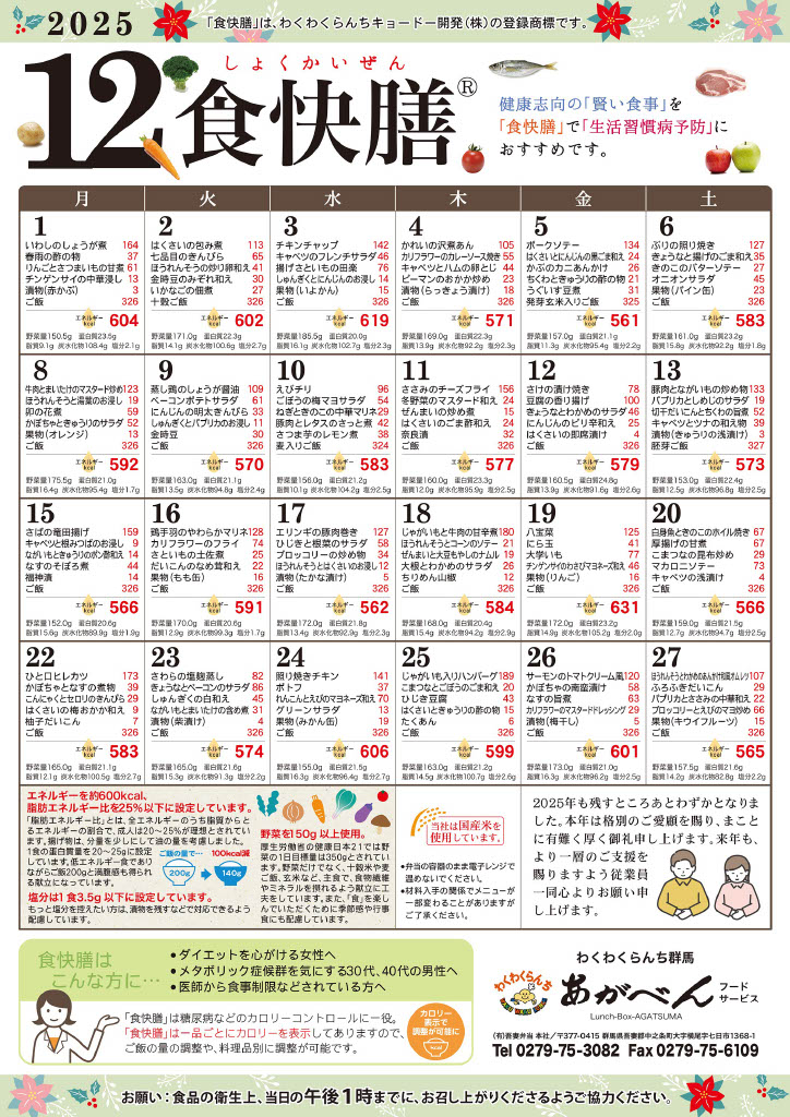 12月の食快膳の献立カレンダーは以下のとおりです。