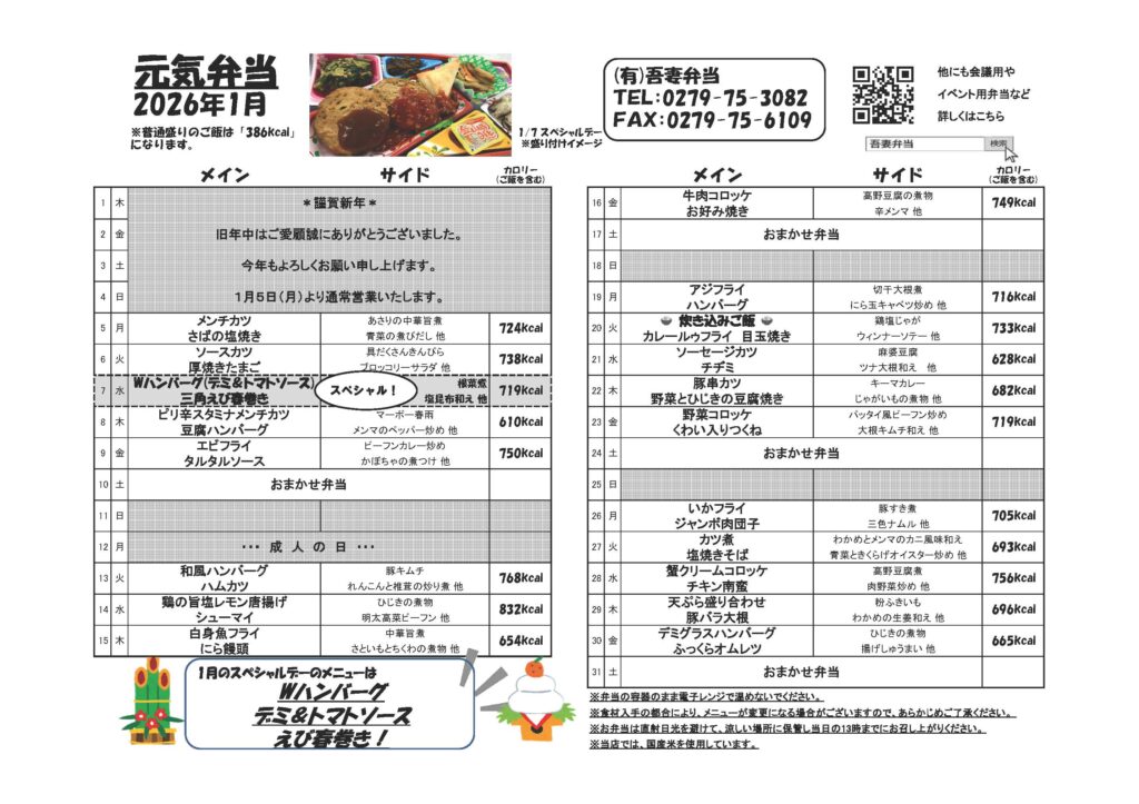 皆さまにご好評いただいている 日替わりお弁当「元気弁当」 の