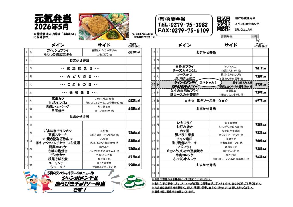 皆さまにご好評いただいている 日替わりお弁当「元気弁当」 の